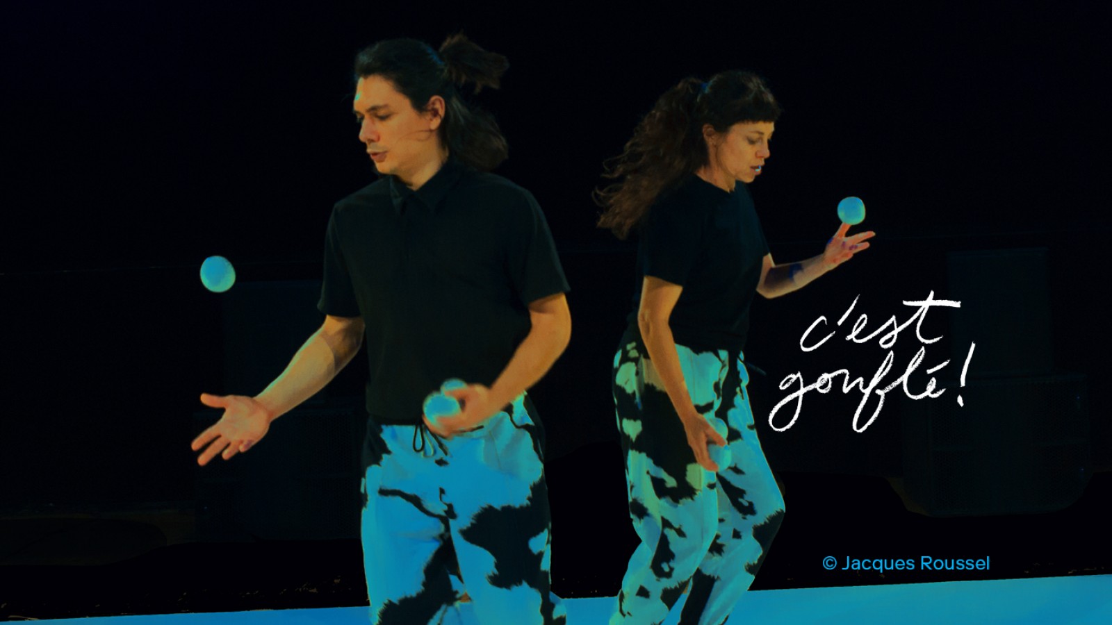 Conception, chorégraphie Elsa Guérin / Performance physique et jonglage Tom Neyret et Elsa Guérin / Collaboration artistique Julien Vittecoq / Création sonore Julien Vadet / Collaboration technique – régie Matthieu Rivière / Dispositif et lumière Elsa Guérin et Matthieu Rivière / Photos résidences JM Héliès